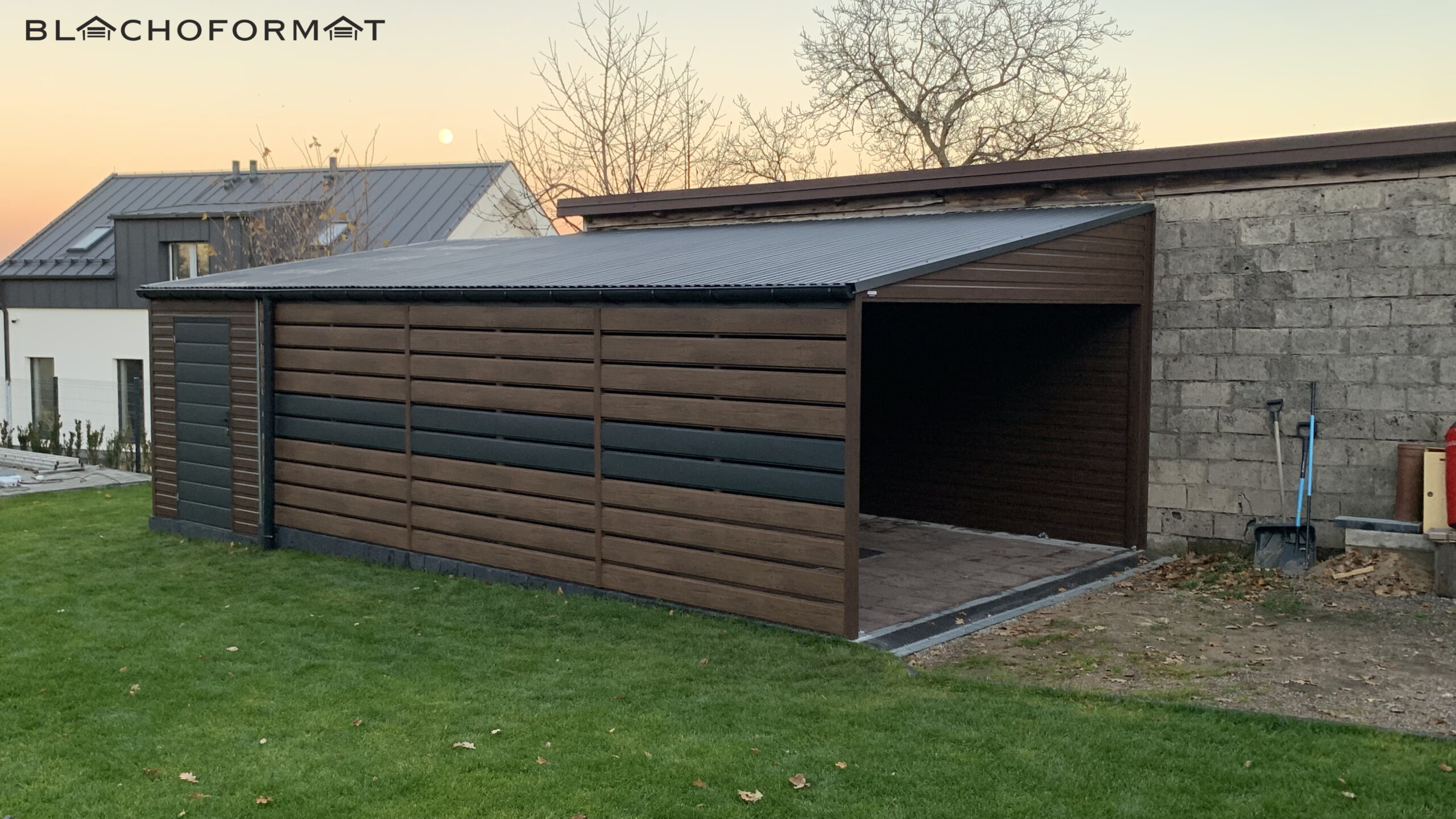W Blachoformat stawiamy na różnorodność oferty, aby sprostać oczekiwaniom naszych klientów. Oprócz garaży i hal blaszanych, specjalizujemy się również w produkcji panelowych wiat śmietnikowych, altanek, schowków i domków narzędziowych. Nasze konstrukcje łączą w sobie funkcjonalność, trwałość i estetykę, stanowiąc praktyczne rozwiązanie dla każdego rodzaju przestrzeni – od posesji prywatnych po tereny publiczne.